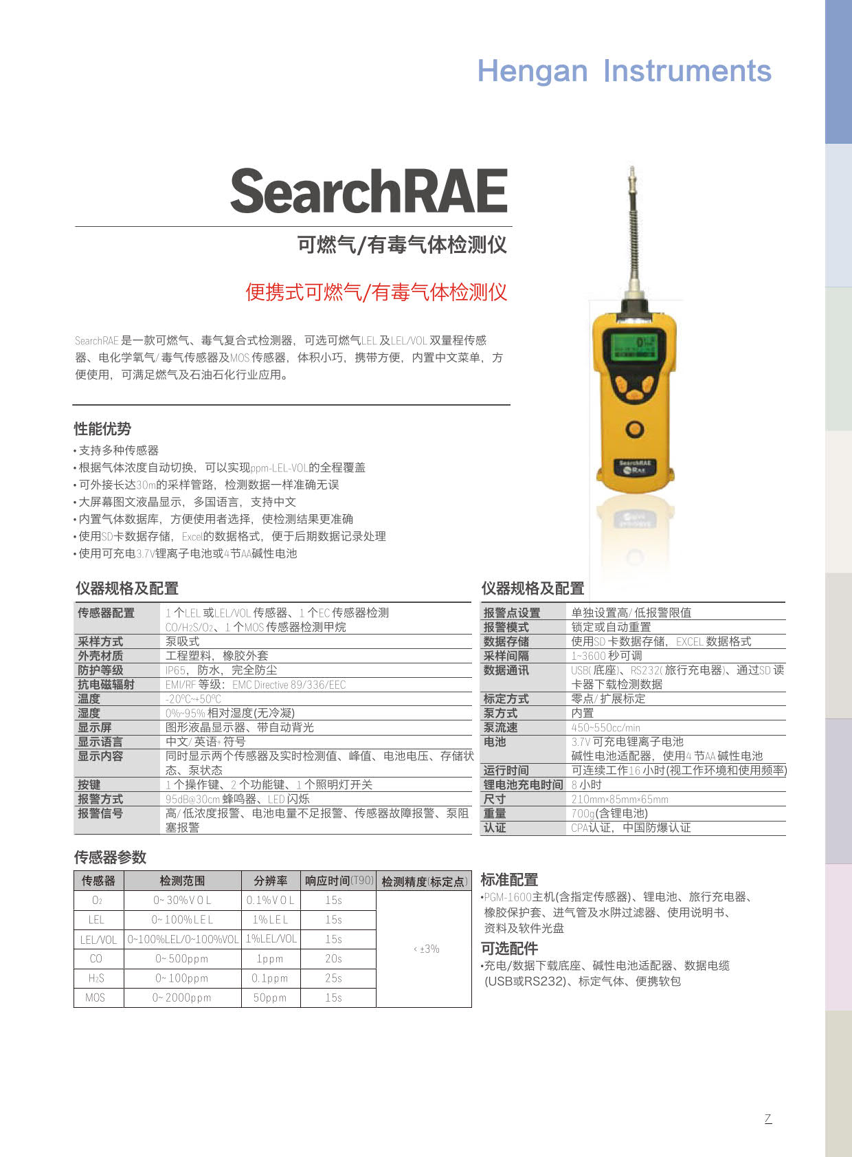 SearchRAE 是一款可燃氣、毒氣復(fù)合式檢測器,可選可燃氣LEL 及LEL/VOL 雙量程傳感器、電化學(xué)氧氣/ 毒氣傳感器及MOS 傳感器,體積小巧,攜帶方便,內(nèi)置中文菜單,方便使用,可滿足燃氣及石油石化行業(yè)應(yīng)用。