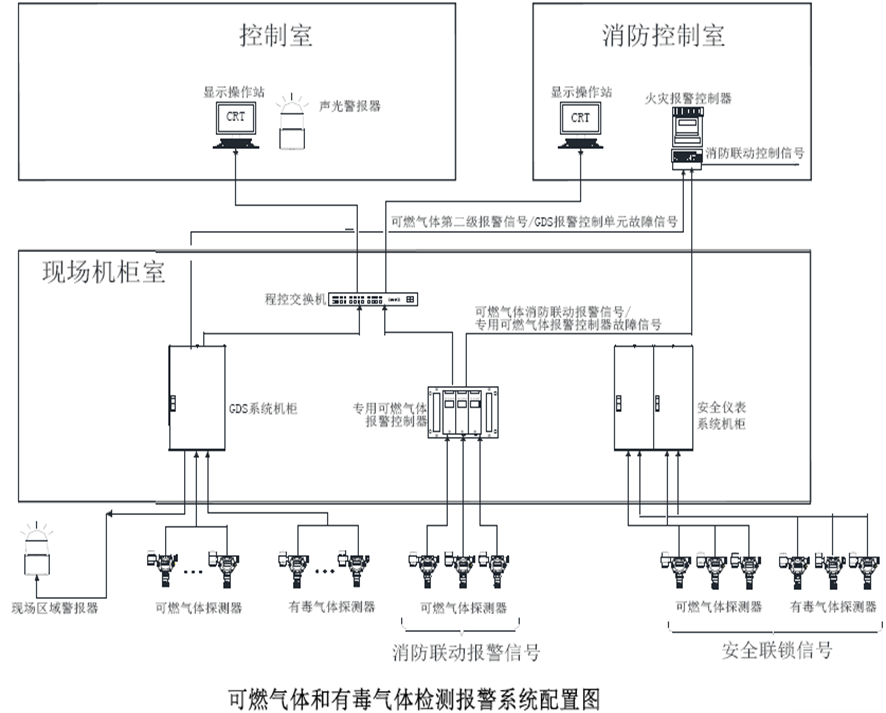 1.GDS系統(tǒng)應(yīng)由可燃氣體或有毒氣體探測器、現(xiàn)場區(qū)域警報器和室內(nèi)報警控制單元等組成?,F(xiàn)場有毒氣體探測器宜帶一體化聲光報警器,可燃氣體探測器可帶一體化聲光報警器。